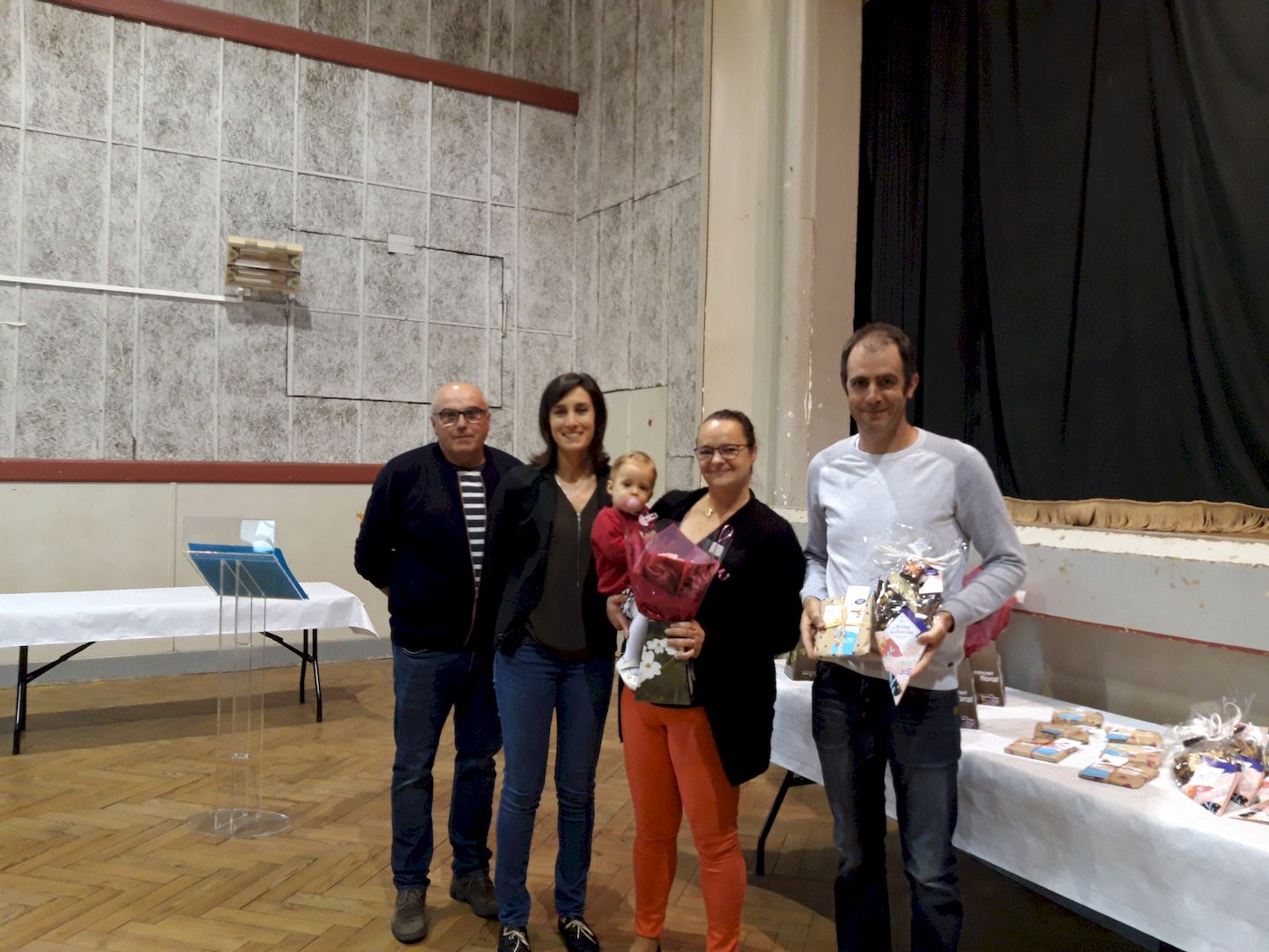 Claude Lasserre après avoir rendu hommage aux mamans en présence du conseil municipal, leur a remis bouquets de fleurs, chocolats et livres d’éveil offerts par le réseau des médiathèques de la Communauté des Communes. Merci aux 10 familles pomaréziennes présentes qui nous ont fait le plaisir de répondre à notre invitation.